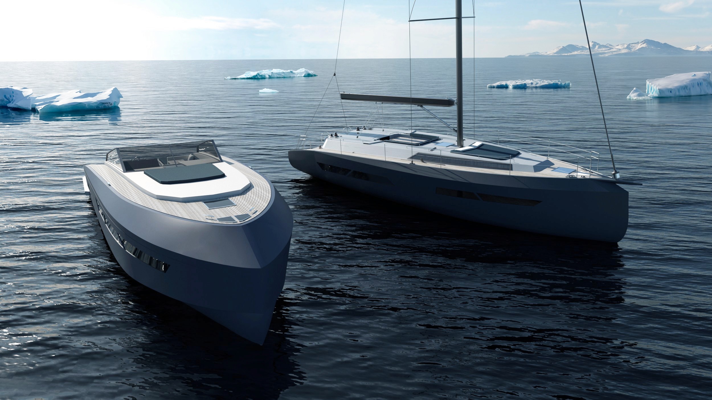 They are “twins” in concept, yet complementary in soul — two boats that embody duality and harmony at once. This constant dialogue between opposites — ice and fire, sail and power, cold minimalism and warm comfort — is at the heart of the project. It is not only about designing yachts, but about capturing the essence of a land where nature is still sovereign, and transforming it into spaces meant to be lived, shared, and experienced at sea.
