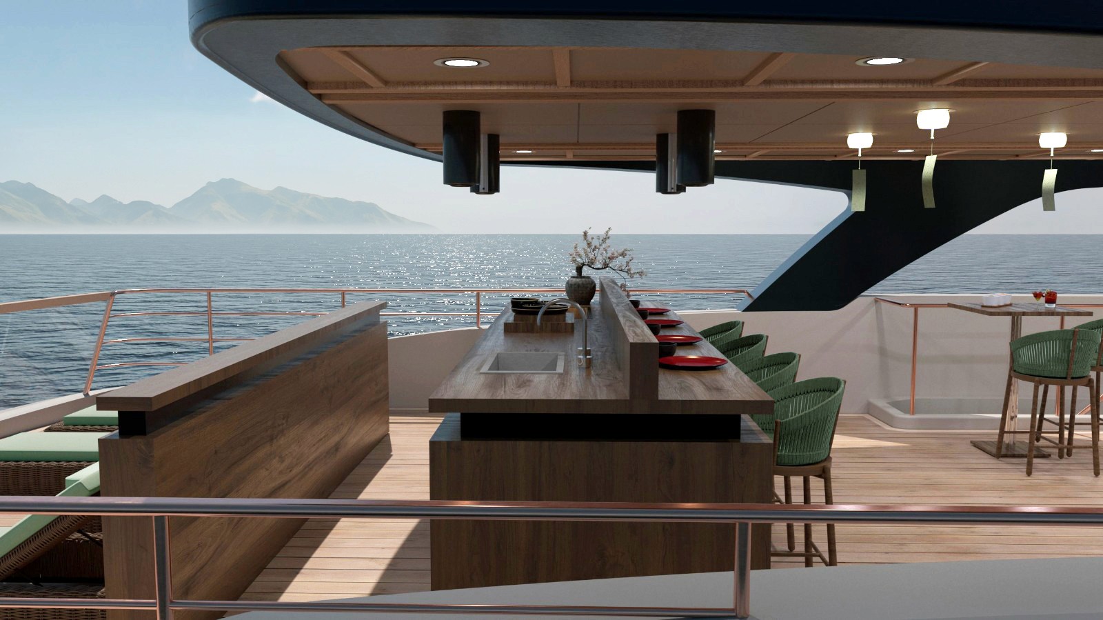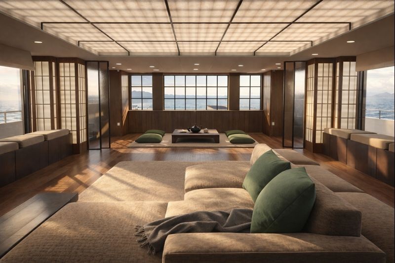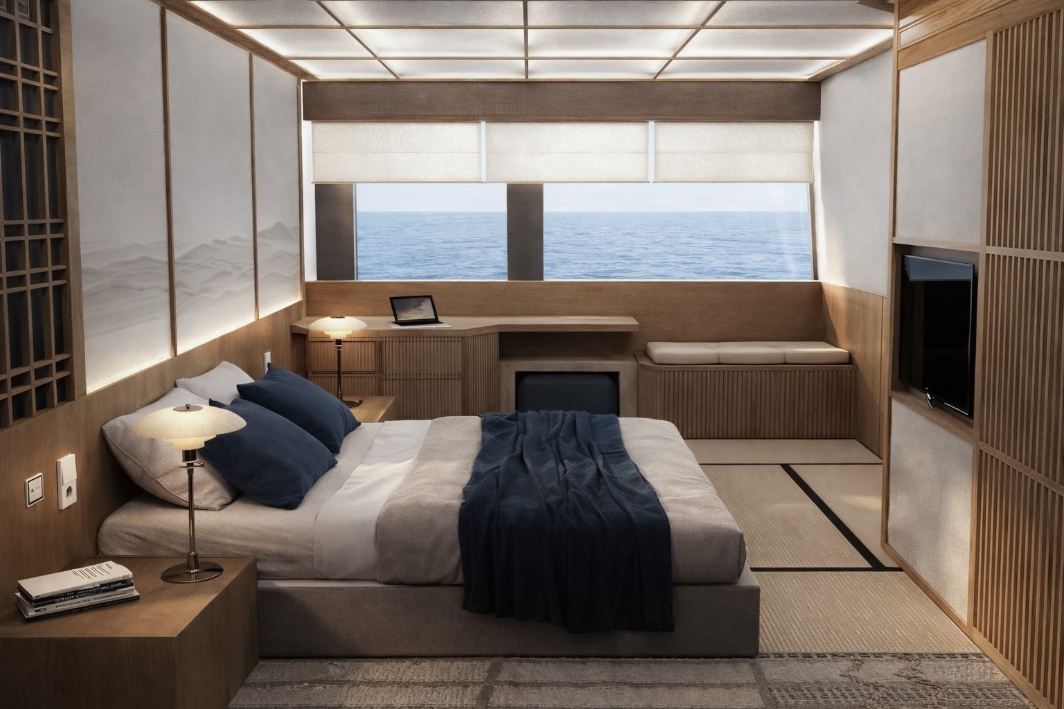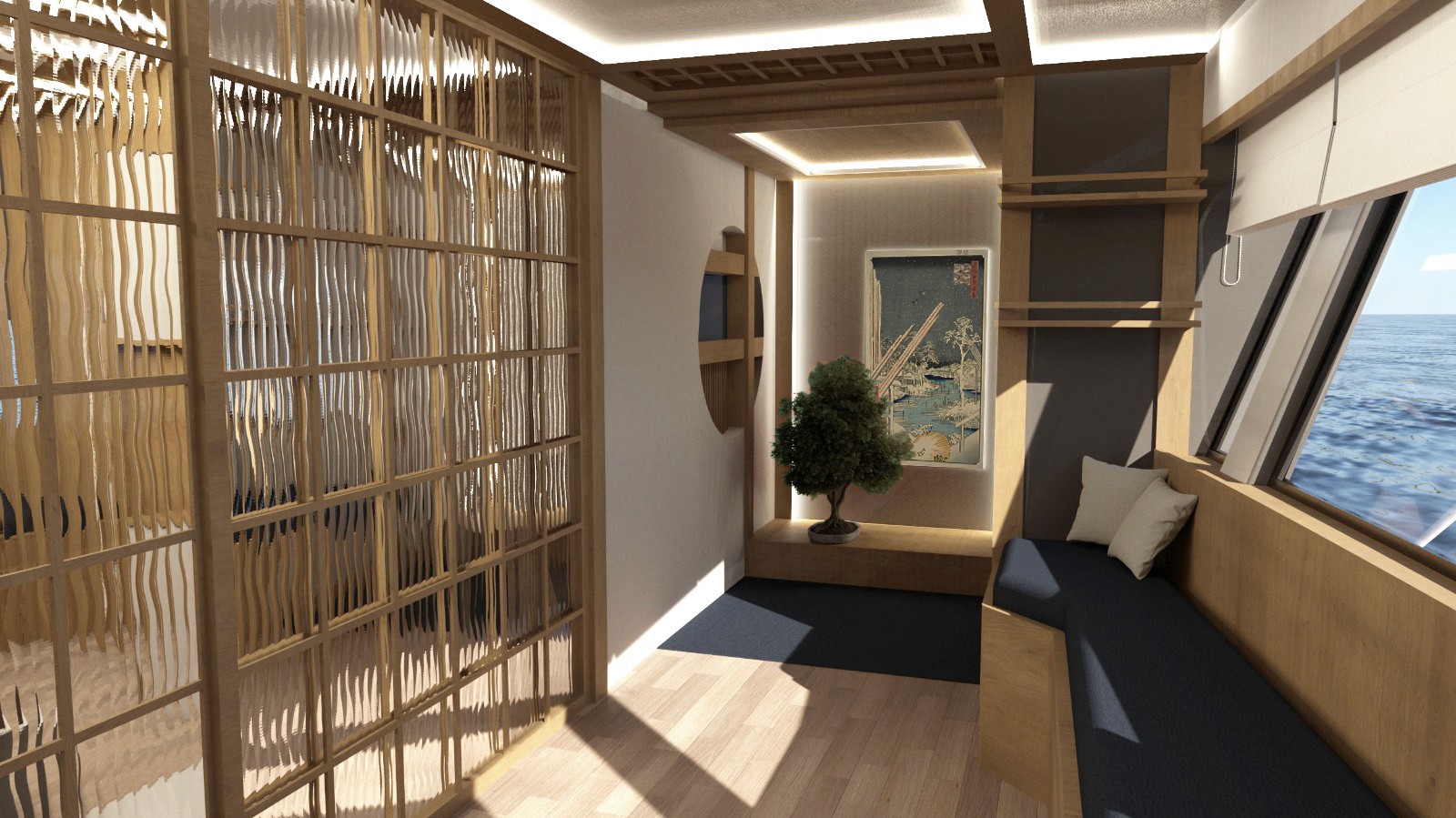 The result is a project that translates the values of Japanese design into a contemporary nautical context, offering an onboard experience conceived for daily living, work, and cultural discovery.